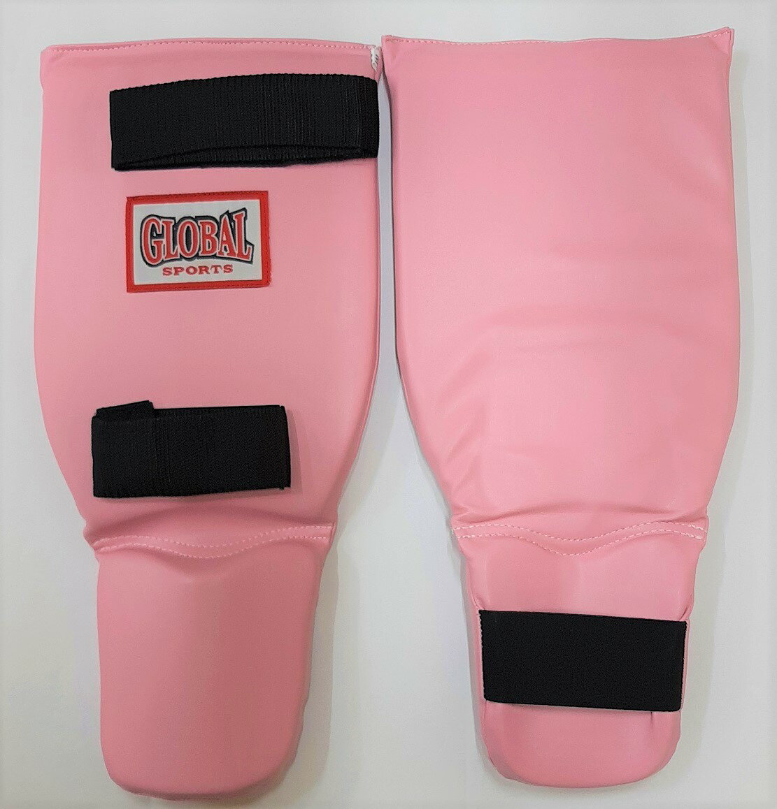 【送料無料】レッグガード 010 (高級レザー) ピンク フリーサイズ (Lサイズ) レガース スネサポーター キックボクシング空手用 GLOBAL SPORTS グローバルスポーツ