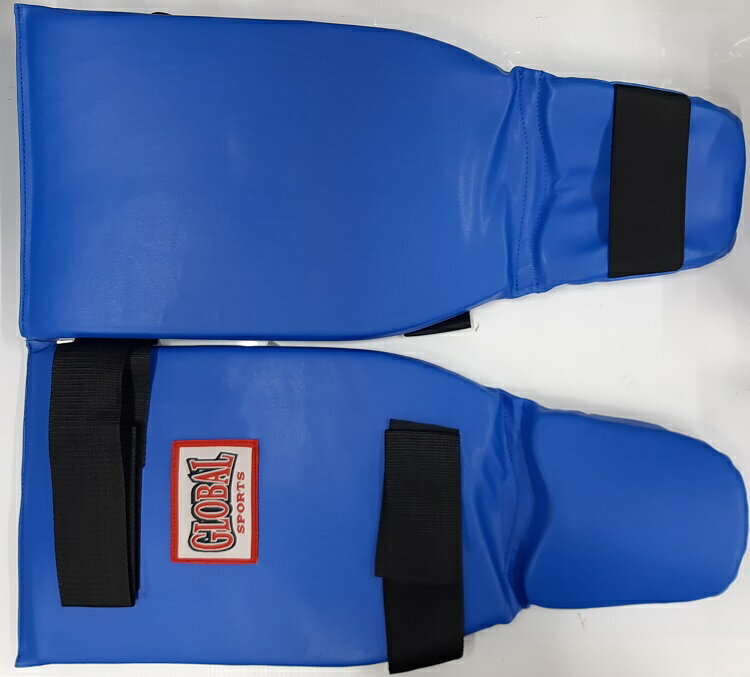 【送料無料】レッグガード 010 (高級レザー) 青 フリーサイズ (Lサイズ) レガース スネサポーター キックボクシング空手用 GLOBAL SPORTS グローバルスポーツ