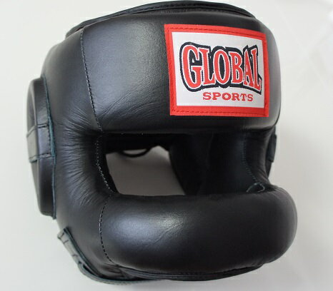 【送料無料】ノーズヘッドガード 064 黒 (高級本革) フルフェイスヘッドギア キックボクシング・ボクシング用 GLOBAL SPORTS グローバルスポーツ