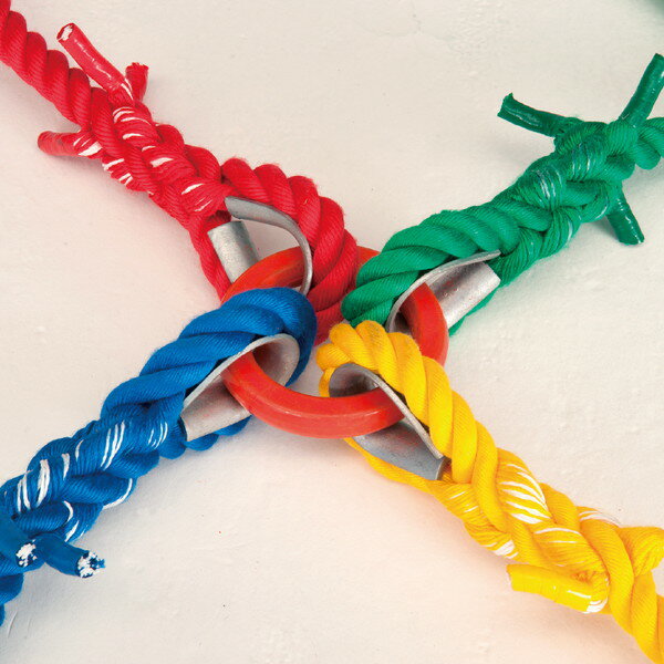 商品説明★ 4方向から引っ張る綱引★ オリジナルルールで楽しもう★ 赤・青・黄・緑のロープはそれぞれ10m★ 丈夫なリングに繋がっているから4方向からの引っ張り合いにも大丈夫。スペック* ロープ:直径30mm×長さ10m/本、リング:直径16cm×太さ25mm* 重量:22kg/組* 材質…ロープ:ポリプロピレン、リング:スチール* 末端テープ加工* ロープ1本に対して大人10人まで対応* よじれたり輪ができた場合は、絶対に引っ張らない!無理に引っ張らず、よじれを戻し一直線に伸ばしてください。キンクになってしまうとロープの引っ張り強さが著しく低下し、使用できなくなります。* 日本製