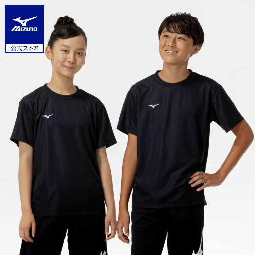 ミズノ公式 ナビドライTシャツ 半袖/丸首 ジュニア ブラック×ホワイト 新生活 新学期 運動会