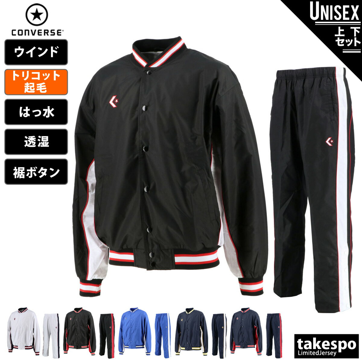スーパーセール最大3000円オフクーポン有! コンバース ウインドブレーカー 上下 ユニセックス セットアップ ブランド CONVERSE CB182112S 裏トリコット起毛 ベンチレーション はっ水 透湿 バスケ 部活 裾ボタン 定番 上下セット スポーツウェア トレーニングウェア
