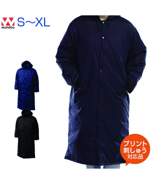 ロング中綿コート【アウター】【wundou(ウンドウ)】S.M.L.XL (オリジナルプリント対応) ロングコート ベンチコート 名入れ 無地 シンプル イベント スタッフ 選挙 選手のベストコンディションを維持 /ネイビー/ブラック 紺/黒 LL ネーム刺繍