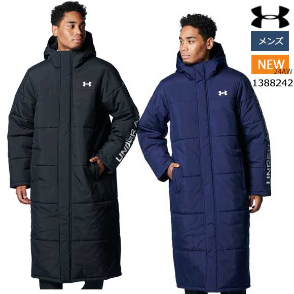 【ブラックフライデーP5倍】【あす楽対応】アンダーアーマー UNDER ARMOUR UAロゴ ロングコート(トレーニング/MEN)メンズ フード付ベンチコート フーディ アウター 中綿コート 1388242 ブラック ネイビー 撥水 スポーツ観戦にも。24aw(2411koi)【冬特】【CPN10S】-