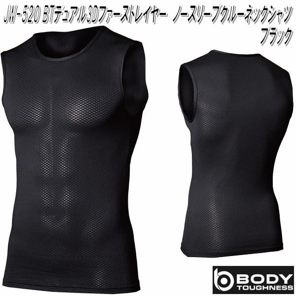 JW-520 BTデュアル3Dファーストレイヤー ノースリーブクルーネックシャツ ブラック SS〜3L OTAFUKU GLOVE【ネコポス対応品2】【お取り寄せ】【ボディータフネス コンプレッションウェア】