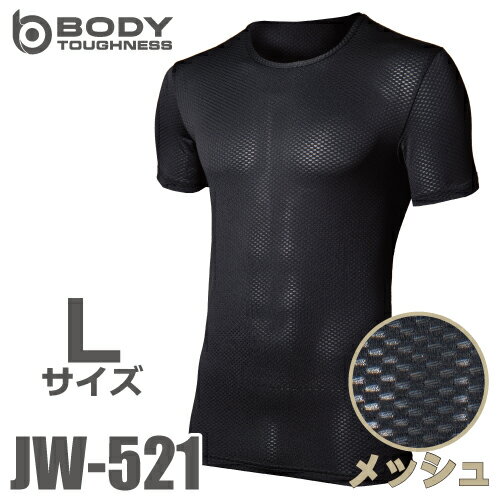 おたふく手袋 メッシュインナー 半袖クルーネックシャツ JW-521 ブラック Lサイズ 3Dファーストレイヤー ブラック