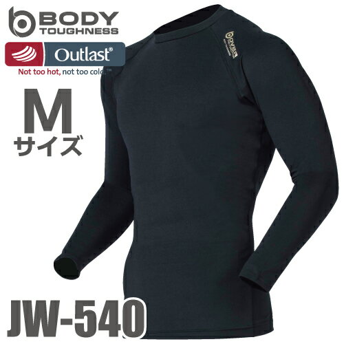 おたふく手袋 アウトラスト ストレッチ長袖インナーシャツ JW-540 クルーネック ブラック Mサイズ 夏冬兼用 NASA オールシーズン ブラック Outlast