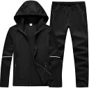 【送料無料】[Gopune] トレーニングウェア メンズ 上下 フード付き 上下セット ランニングウェア スウェット パーカー 快適 フルジップ ジャケット ジャージ スポーツ ルームウェア カジュアル 春秋冬用 色:ブラック、サイズ:M