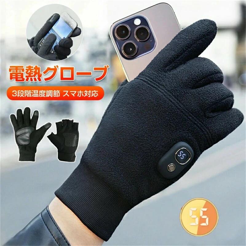 電熱グローブ ハンドウォーマー 指ぬき手袋 3段階温度調節 電熱手袋 暖房手袋 保温手袋 ヒーターグローブ 充電式 ヒーター手袋 インナーグローブ ヒーター 付き 手袋 冬用 スマホ対応 バイク用手袋 暖かい バイク 自転車 スキー スポーツ 防寒 防風 対策 屋外作業 スマホ対応