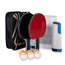 【テーブルさえあれば簡単設置】卓球台は要らない、テーブルだけあれば、簡単にセットして卓球を楽しめるポータブルネットです。グリップ機構の支柱で天板を挟んで固定します。ネットの伸縮サイズは最長約180cm、厚さ約5cmまでのテーブルに設置可能。わざわざ卓球館に行かなくても、家にいても卓球を楽しむことができます。【コンパクト・持ち運びに便利】この卓球セットを使いたい時に使いたいだけネットを引っ張り出す方式で、収納時はとってもコンパクト。自宅、アウトドア、レジャー、職場など、どこでも遊べてすごく盛り上がって楽しめます。卓球は上達するや、運動不足も多少は解消される、ストレス発散にもなる、しかもプラスチック製で軽量なので、旅行やイベントに持っていくのにもおすすめです!【清潔用スポンジ付き】柔らかいスポンジで、ラケットの表面を傷つけることなく、汚れやほこり、他の粒子を捉えられ、ふんわりなめらかタッチで汚れを拭き取ります。【ラケット】 材料は木製・ラバー発泡 適度な弾みとソフトな打球感を備える。【携帯型伸縮ネットラック仕様】卓球セットネットの長さ(横幅)は可変式なので、本格的なプレーを楽しむことも、お子様用に小さな台を作ってあげることも可能です。材質:PEプラスチック、人体工学の応力ハンドル+高度変形防止ネットラック+リバウンドボタンを採用しております。【セット内容】ラケット2本、伸縮ネットラック1本、ボール6個、収納バッグ。