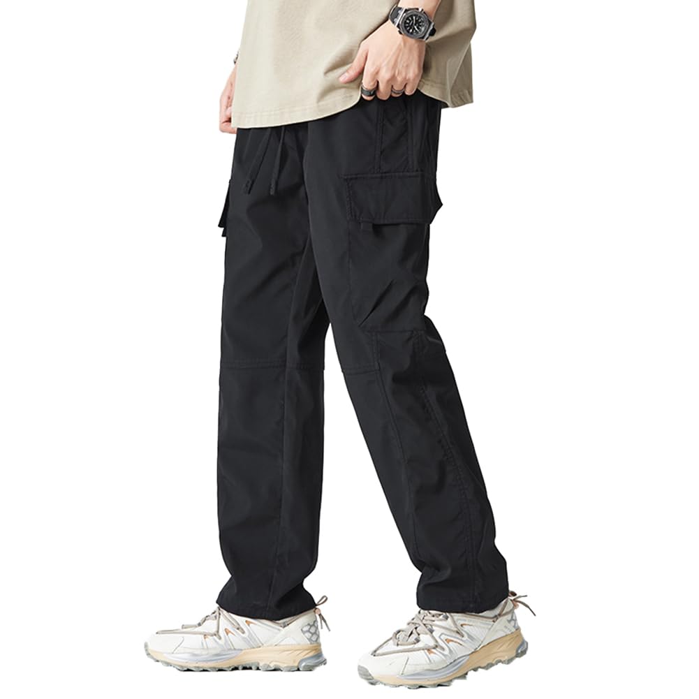 【送料無料】[Candy Kiosk] カーゴパンツ メンズ ズボン 涼しい 春服 夏服 ロングパンツ リラックスパンツ ゆったり 大きいサイズ ポケット付き ストリート 無地 調整紐 人気 快適 かっこいい カジュアル シンプル オシャレオールシーズン 色:#1:ブラック、サイズ:4XL