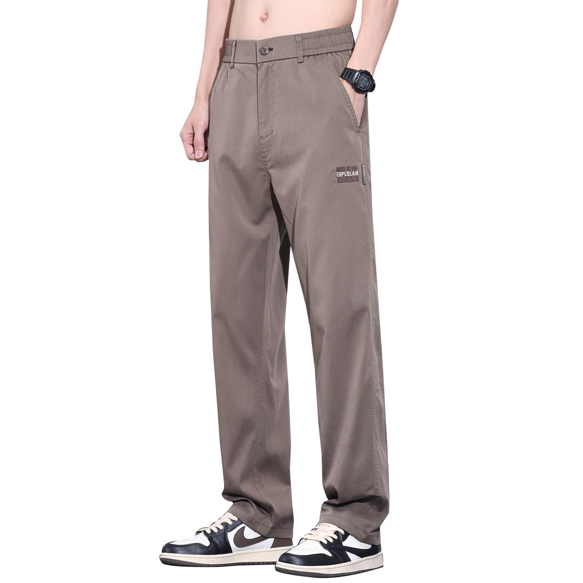 【送料無料】[Candy Kiosk] ズボン メンズ ストレートパンツ 涼しい ワイドパンツ 夏服 ロングパンツ ゆったり イージーパンツ 無地 ボトムス 通気性 快適 速乾 大きいサイズ オールシーズン 色:#3:カーキ、サイズ:4XL