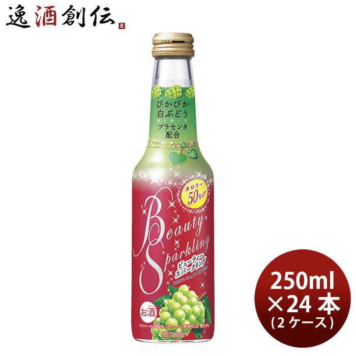 ※ヴィンテージやラベルのデザインが商品画像と異なる場合がございます。当店では、現行ヴィンテージの販売となります。ご指定のヴィンテージがある際は事前にご連絡ください。不良品以外でのご返品はお承りできません。ご了承ください。タカラ BeautySparkling ぴかぴか白ぶどう [瓶] 250ml x 12本 [ケース販売][宝酒造]【ギフト不可】母の日 父の日 敬老の日 誕生日 記念日 冠婚葬祭 御年賀 御中元 御歳暮 内祝い お祝 プレゼント ギフト ホワイトデー バレンタイン クリスマス白ぶどう果汁に、女性に人気の美容成分「プラセンタ」をプラス!華やかな香りとすっきりした甘さと嬉しいカロリー50%オフで、おいしく飲んで“ぴかぴか”キレイ。