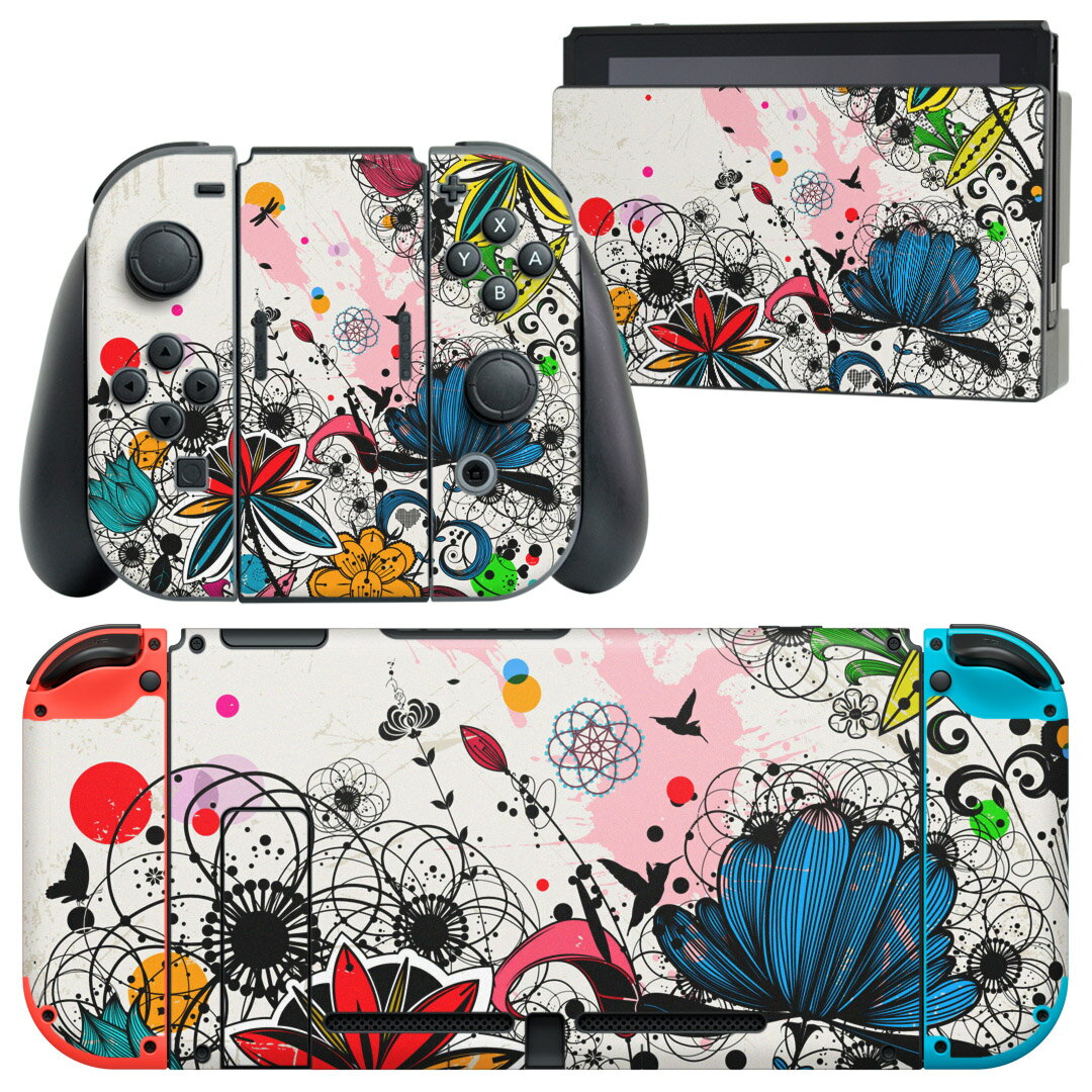 igsticker Nintendo Switch 専用 デザインスキンシール 任天堂 ニンテンドー スイッチ 専用 本体ドック Joy-Con Joycon ジョイコン 専用 ゲーム機 カバー アクセサリー フィルム ステッカー 014674 花 フラワー カラフル
