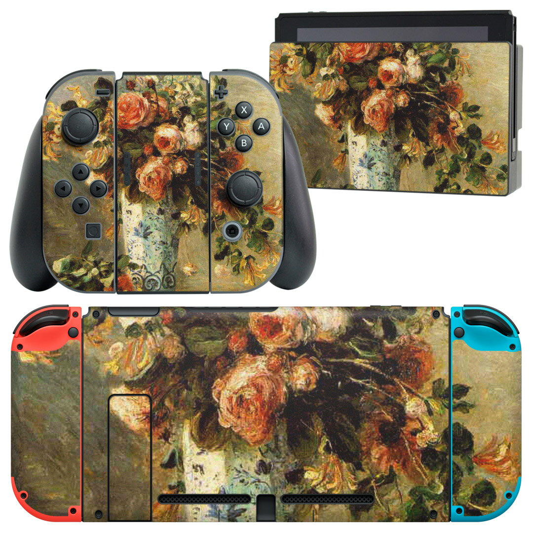 igsticker Nintendo Switch 用 デザインスキンシール 任天堂 ニンテンドー スイッチ 専用 本体ドック Joy-Con Joycon ジョイコン 専用 ゲーム機 カバー アクセサリー フィルム ステッカー 003186 花 絵画 イラスト
