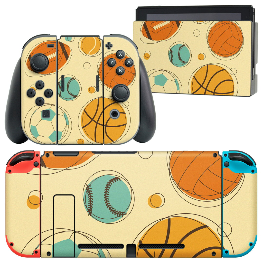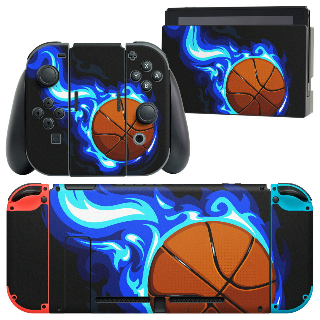 igsticker Nintendo Switch 用 デザインスキンシール 任天堂 ニンテンドー スイッチ 専用 本体ドック Joy-Con Joycon ジョイコン 専用 ゲーム機 カバー アクセサリー フィルム ステッカー 010182 スポーツ バスケ ボール
