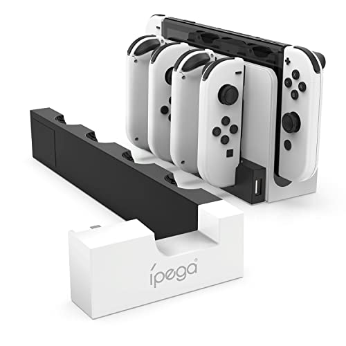 ipega公式(有機ELモデル)タイプipega PG-9186 Joy-Conハンドル 充電 ホルダー 4台同時充電 Joy-Con 充電器 収納 一体型 急速充電 充電状態を示す指示ランプ搭載 Switch OLED用/Switch(有機ELモデル)対応 日本語説明書付 (White)