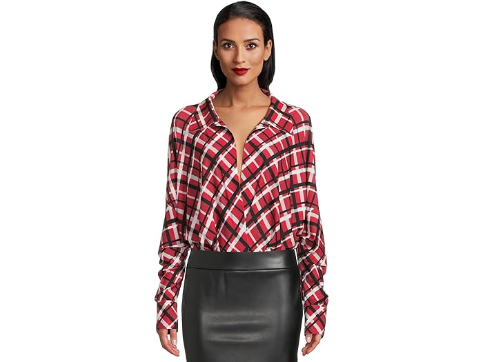 (取寄) カマリ スーパー オーバーサイズ ボーイフレンズ ネック シャツ ボディスーツ Super Oversized Boyfriend Neck Shirt Bodysuit Red Bias Plaid