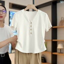 ベーシック トップス レディース ホワイト ストレート ショルダー 半袖 Tシャツ 女性用 夏 2025 ホット スタイル スタイリッシュ スモール シャツ Vネック スリムフィット トップ