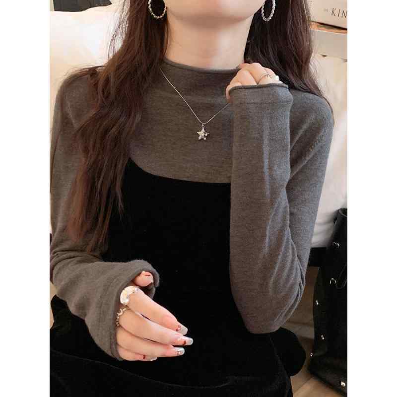 ・素材: ポリエステル・袖型: ランタンスリーブ・領型: ハーフハイネック・袖丈: 長袖・カラー: 杏色,白,黒,グレー・サイズ: S,M,L,XL