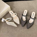 高跟パンプス レディース ポインテッドトゥ ストライプ柄 チャンキーヒール 6cm メッシュ アッパー スリッポン 春夏 ブラック レッド ブルー ベージュ ピンク グリーン パープル ゴールド