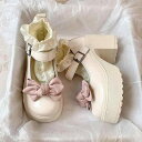 靴 レディース ロリータ靴 メリージェーン 厚底 ラウンドトゥ PUレザー 無地 秋 ハイヒール 8cm以上 かわいい ゴスロリ コスプレ ベージュ ブラック ピンク系