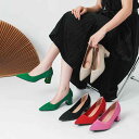 パンプス レディース ポインテッドトゥ ミドルヒール 太ヒール スリッポン 合成皮革 無地 韓国 ブラック ピンク系 ベージュ 春夏