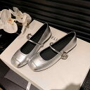 フラットシューズ レディース バレエシューズ メリージェーンスタイル ローヒール パンプス ラウンドトゥ 繊維 婦人靴 ぺたんこ 普段使い かわいい シルバー シルバー 黒 ブラック 茶色 ブラウン 春