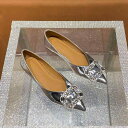 パンプス レディース フラット ローヒール ポインテッドトゥ シルバー シューズ ぺたんこ靴 スリッポン 繊維 粗ヒール 歩きやすい 普段使い かわいい 韓国 春夏 秋冬 黒 シルバー ゴールド