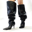 ブーツ レディース 大腿丈 ニーハイブーツ ポインテッドトゥ ピンヒール ブーツ 秋冬 高ヒール 8cm以上 膝上丈 筒太 履き口 ゆったり スムース スエード調 グレー ブラウン ベージュ ピンク グリーン シルバー