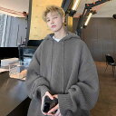パーカー 男女兼用 ヘビーウェイト スエード調 フード付き フーディ ポリエステル スパンデックス カジュアル 普段使い アメリカンカジュアル レトロ ゆったり ペア 春秋 刺繍