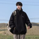 パーカー 男女兼用 ユニセックス フリース 裏起毛 ハーフジップ フード付き スウェット トレーナー アメカジ レトロ ルーズシルエット ポリエステル 刺繍 秋冬 普段使い カジュアル アウター ブラック グレー ベージュ ダークグリーン