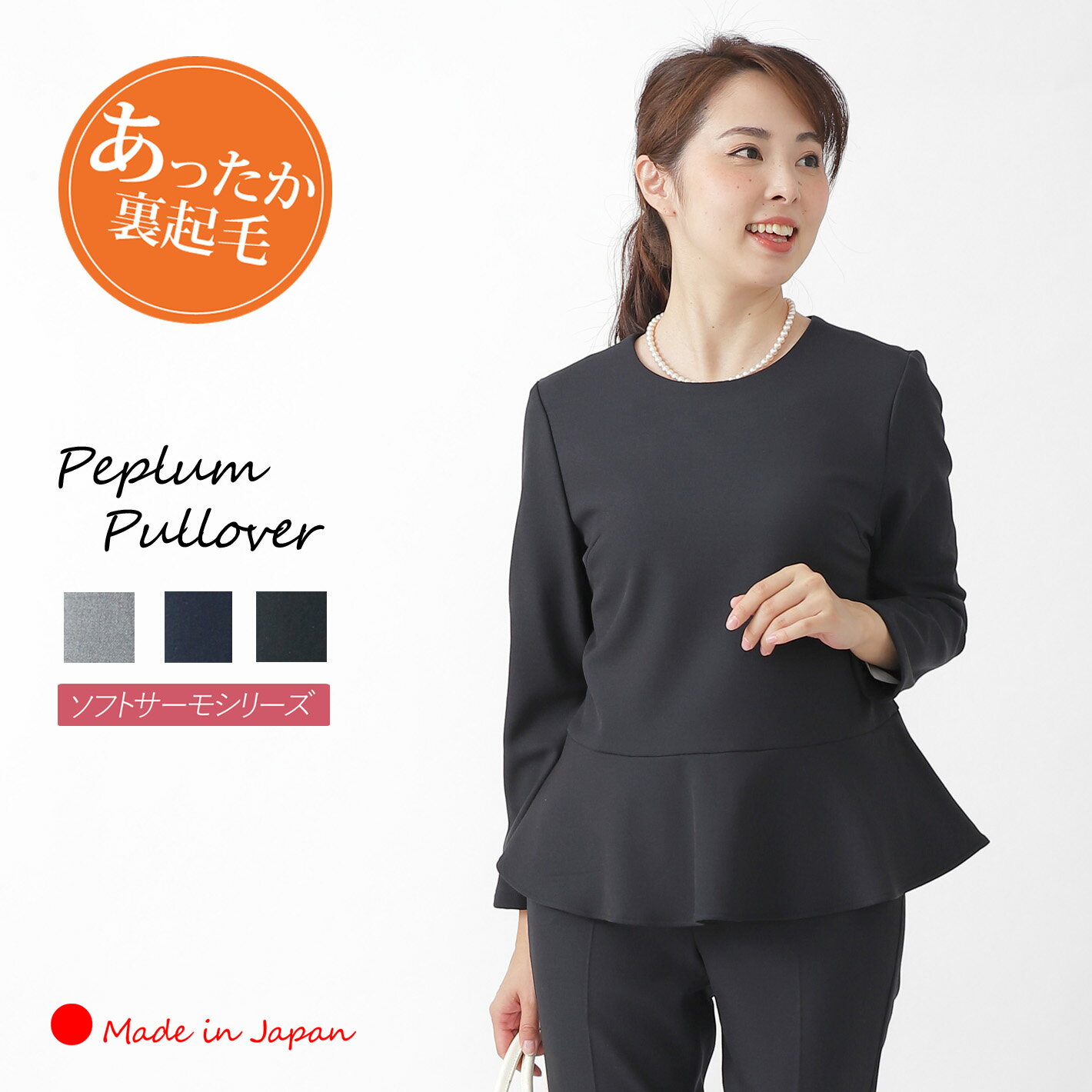 【 日本製 】 ペプラム トップス 裏起毛 暖かい プルオーバー シンプル 七五三 入学式 ママ スーツ 母 30代 40代 顔合わせ 母親 服装 50代 卒業式 フォーマル 仕事 フォーマル お宮参り きれいめ 秋冬 【ソフトサーモプルオーバー】<8024>