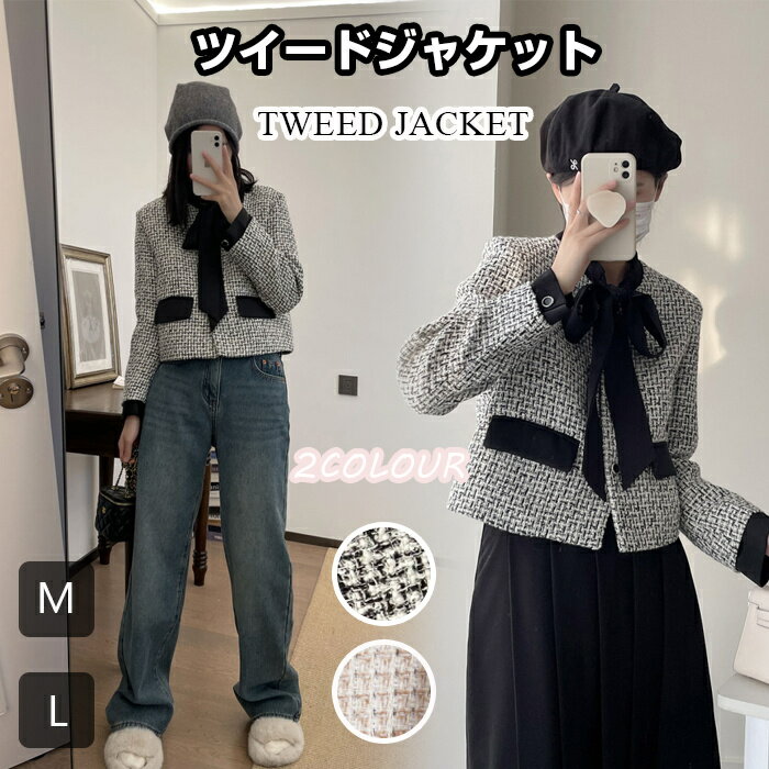 ツイードジャケット レディース 春 ジャケット アウター ショート 羽織り ノーカラージャケット ツイード 長袖 ホワイト 白 フォーマル ママ 母親 七五三 お宮参り かわいい 大人可愛い ビジネス オフィス 通勤 OL 上品 フェミニン きれいめ カジュアル S-L