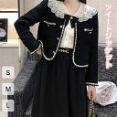 ツイードジャケット レディース 春 ジャケット アウター ショート 羽織り ノーカラージャケット ツイード 長袖 ブラック フォーマル ママ 母親 七五三 お宮参り かわいい 大人可愛い ビジネス オフィス 通勤 OL 上品 フェミニン きれいめ カジュアル S M L