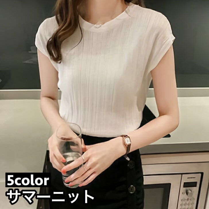 ノースリーブ ニットTシャツ レディース サマーニット tシャツ 半袖 トップス プルーオーバー カットソー フレンチスリーブ 無地 キレイめ 薄手 ゆったり クルーネック タンクトップ カジュアル 春 夏 秋 送料無料 S M L XL 2XL 3XL 4XL 5XL 上品 オフィス 通学 韓国