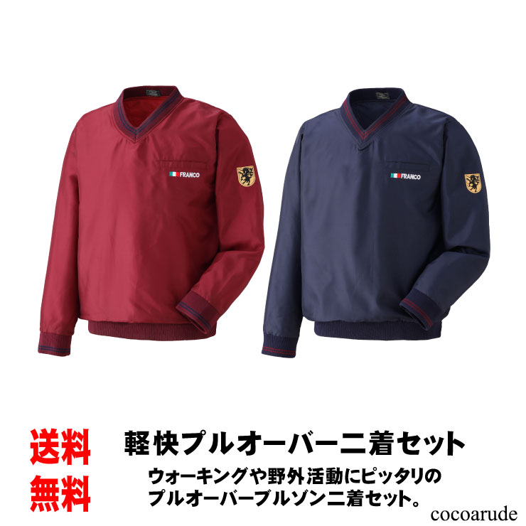 【送料無料】プルオーバー ブルゾン 2着セット Vネック ワインレッド ネイビー メンズ 撥水加工 胸ポケット 両脇ポケット付き ポリエステル100% おしゃれ おすすめ コーデ プレゼント 贈り物 贈答品 お歳暮 大感謝祭 ココアルデ 41080