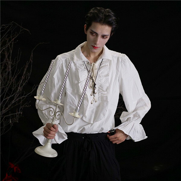 ブラウス ヴィンテージ パンク ゴシック ハロウィンコスプレ ハロウィン仮装 中世ヨーロッパ ルネッサンス 17世紀 王子様 洋服 演劇 コット風 シャツ 男性用 コスチューム パーティー 演出 ステージ 公爵 トップス ホワイト ブラック d9345c0x0x0f4