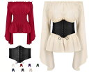 レディース トップス シャツ ハロウィンシャツ 2点セット 長袖 中世 ヨーロッパ風 復古 西洋 民族衣装 貴族 演劇 舞台服 ステージ衣装 コスプレ 女性用 宮廷装 コスチューム イベント 演出服 文化祭 学園祭 パーティー 余興 コスプレ衣装 舞台 芝居 ミュージカル 演出 衣装