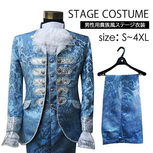 ゴシック 王子様 演出 大人 ステージ 衣装 男性 ブルー タキシード 中世ヨーロッパ イベント 仮装 演劇 ダンス ハロウィン 舞台 貴族服 忘年会 メンズ コスプレ イギリス 豪華 パーティー コスチューム クリスマス 文化祭 学園祭 大きいサイズ S 2XL 3XL 4XL eb018x1x1x1