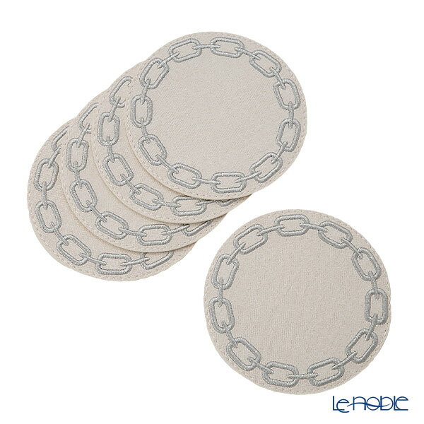 【P10倍・クーポン】トルコ雑貨 アルテペレ チェーン コースター 11.5cm 5枚セット デニム調 ホワイト/グレー 刺繍ラメ入り PVC加工合皮製 撥水加工 トルコ 雑貨