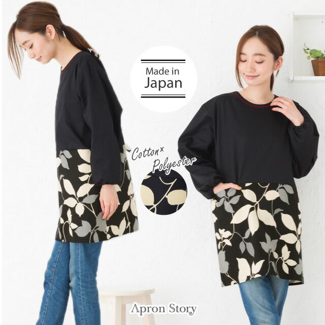 【日本製】【メール便1枚のみ送料無料】リーフ柄切替デザイン割烹着 エプロン スモック かっぽう着 かわいい おしゃれ プレゼント ギフト【N】【M】【レビュー特典対象】