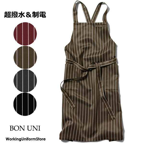 飲食店 【超撥水】胸当てエプロン 27335 ストライプツイル ボンユニ