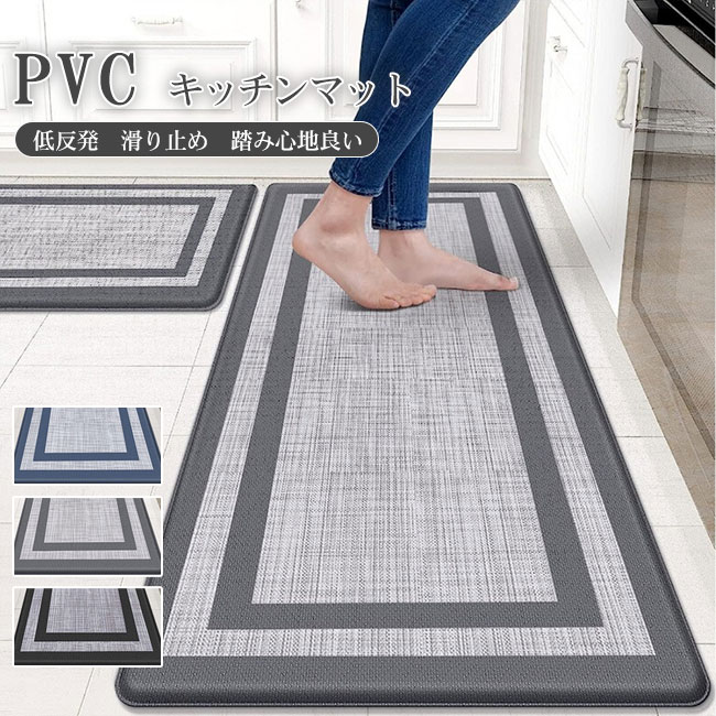 【送料無料】キッチンマット 台所マット PVC 水拭きできる 厚手 クッション性 低反発 滑り止め オールシーズン 疲れにくい 柔らかい 耐久性 お手入れ簡単 撥水 防水 防汚 防災 シンプル 44*75 45*120