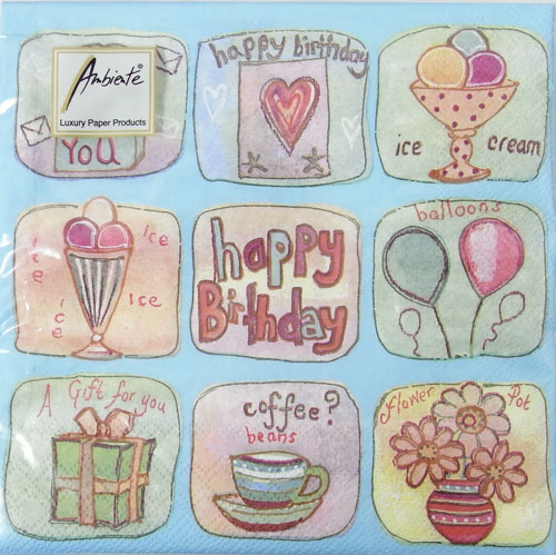 ペーパーナプキン[メール便OK] BIRTHDAY PARTY BLUE 10枚入り [Ambiente] バースデイ 誕生日