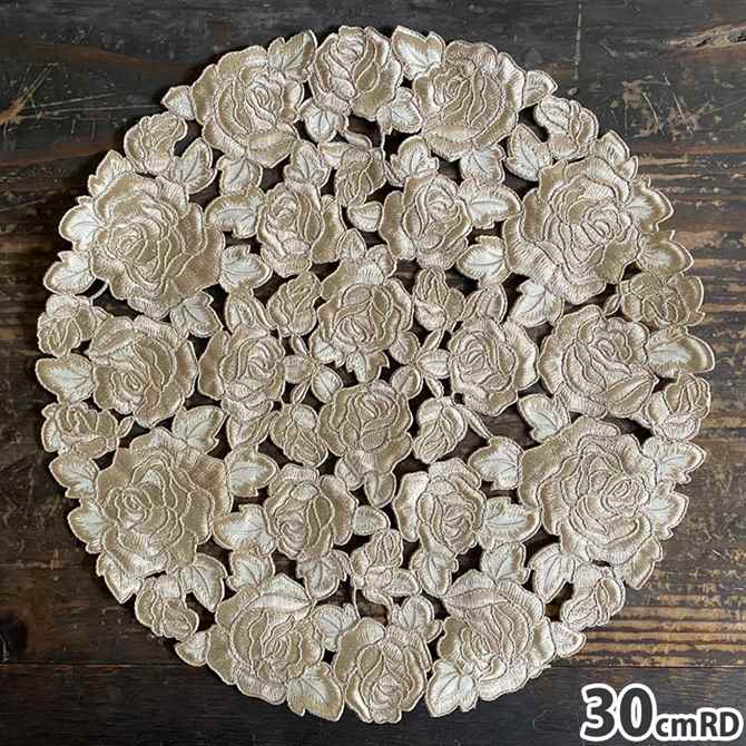【スーパーセール★726円OFF!】 レース ドイリー レース布 レース生地 φ30cm 丸ドイリー コード刺繍 レース刺繍 カットワーク all embroidery goldbeige オールエンブロイダリーゴールドベージュ L2 ドイリー 花刺繍 ヨーロピアン おしゃれ ロココ