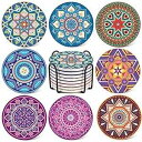 LIFVER 8 Packs Absorbent Drink Coaster Sets, Mandala Style Ceramic Coasters with Holder, 4 Inches Coasters for Drinks with Cork Base, Great Colorful Decor, Ideal Thanksgiving and Housewarming Gifts