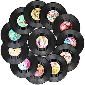 DuoMuo Funny Retro Record Coasters for Drinks with Vinyl Player Holder for Music Lovers,Set of 6 Conversation Piece Sayings Drink Coaster,Housewarming Hostess Wedding Registry Gift Ideas
