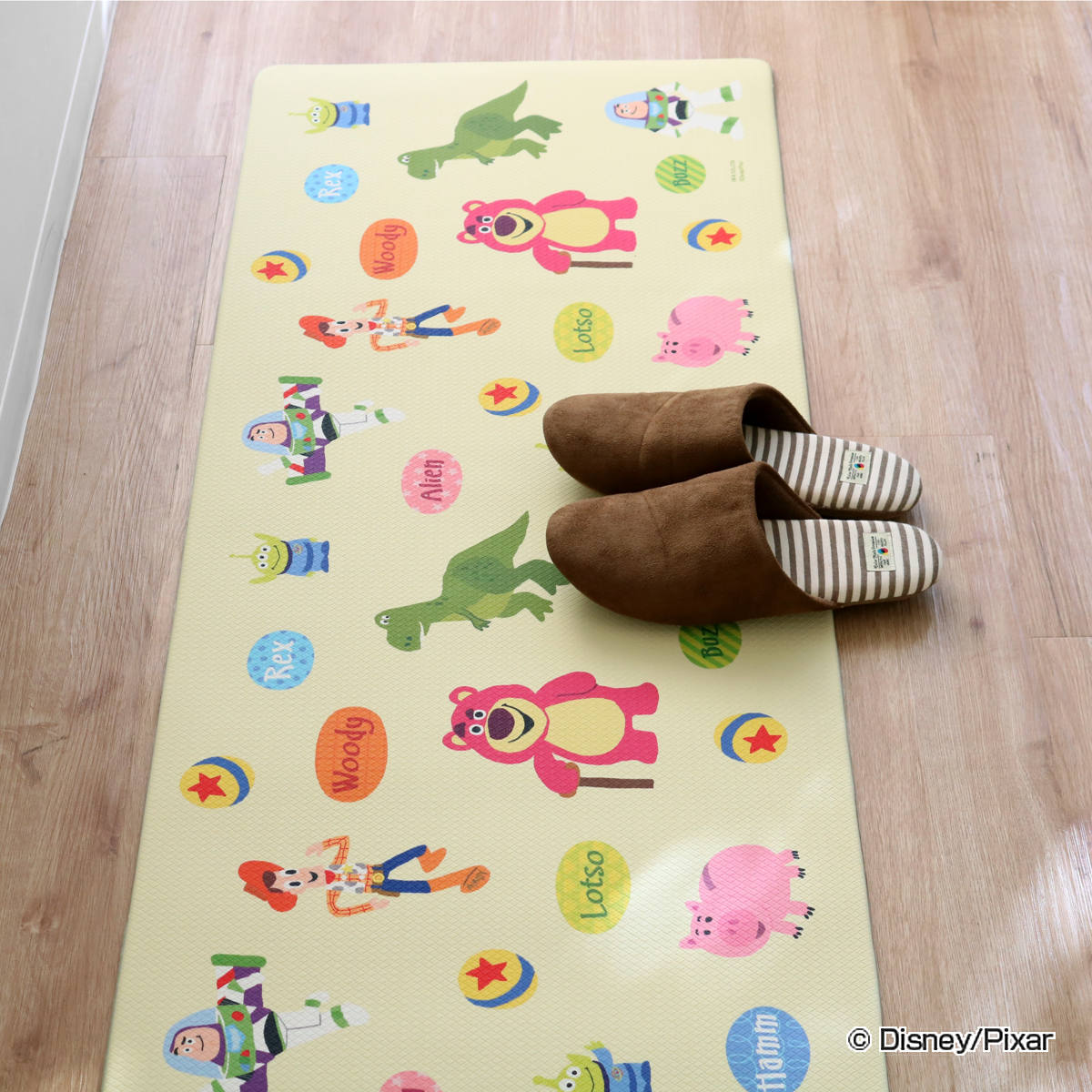 サイズ約 横120×縦45(cm)厚さ:約 0.5(cm)内容量1枚材質塩化ビニル樹脂生産国中国製洗濯不可床暖房/ホットカーペット対応注意事項※床暖房の長時間の連続使用や高温でのご使用は避けてください※商品ページ内には別の商品を含む画像を使用しています区分返品・キャンセル区分(小型商品)ギフトラッピングページを見る●トイ・ストーリーの拭いてお手入れするマット(45×120cm)です。●水や汚れもササッと拭くだけでキレイになりお手入れ簡単です。●キッチンだけでなくリビングや子ども部屋など、どんなお部屋も明るくなる楽しいデザインです。●もっちりとした程良いクッション素材が足腰の負担を減らしてくれます。●厚さはスマートな5mmサイズなので、足や下段の引き出しに引っかかりにくくお掃除もスムーズに行えます。おすすめポイントトイ・ストーリーの拭いてお手入れするマット敷くだけでハッピーな空間が広がるディズニーのキッチンマットシリーズです。トイ・ストーリーのキッチンマットは、映画でおなじみのキャラクターたちが集まったカラフルで楽しいデザインです。水や汚れを弾くPVC素材が床面をしっかり保護し、お手入れも簡単にできます。キッチンやリビング、子ども部屋など様々なシーンで活躍します。水や汚れもすぐ拭けるからお手入れラクラク水や油がはねたり、調味料をこぼしたりして汚れがちな床をしっかり保護してくれます。水や汚れを弾くので、水滴が落ちやすいキッチンでもササッと拭くだけでキレイになり、お手入れ簡単です。お洗濯の必要がないので、家事の時間短縮、水道代、電気代の節約になります。足腰の負担を減らしてくれるもっちりクッション素材もっちりクッション素材なので踏み心地が良く、特に立ちっぱなしのキッチンでの作業では足腰の負担を減らしてくれます。また食器やおもちゃなどが落下しても衝撃を吸収し、床を傷や凹みから守ってくれます。子ども部屋にもぴったりな楽しいデザインキッチンだけでなくリビングや子ども部屋など、どんなお部屋も明るくなる楽しいデザインです。商品詳細裏面は滑りにくい仕様で安心裏面は滑りにくい仕様になっており、キッチンや子ども部屋での転倒など思わぬ事故を防止できて安心です。スマートな厚さ5mm厚さはスマートな5mmサイズです。めくれにくいフチ加工で足や下段の引き出しに引っかかりにくく快適です。お掃除もスムーズ薄くて段差が小さく、お掃除ロボットもスムーズに移動できます。フローリングワイパーでもサッとお掃除ができます。ご注意点●長期間敷き詰めたままにしておくと、商品が床面に付着したり、変色したりすることがあります。ときどき使用場所をずらしたり中性洗剤で床面を拭いたりしてご使用ください。●素材のにおいが気になる場合は、風通しのよいところで陰干しをしてください。●ご使用場所では定期的な換気をおすすめいたします。サイズ違い一人暮らし向けのコンパクトなキッチンにピッタリ!玄関やソファの前にも。どんなキッチンにもフィット!ベッドサイドにも。ファミリータイプのマンションや一戸建ての広いキッチンでもバッチリ!関連キーワード:45 塩ビ キッチン用マット 水ぶきOK 水拭きOK クッションフロアマット 疲れにくい ラグマット オールシーズン オールシーズン使える 1年中使える 台所用マット 足元マット 室内マット フロアマット 屋内マット 多目的マット 長方形マット キッチン用品 キッチンアイテム キッチングッズ キッチン小物 キッチン雑貨 おすすめ オススメ お洒落 オシャレ 一人暮らし ひとり暮らし 新生活準備 ソファサイド ベッドサイド お掃除ロボ対応 キャラ ウッディ バズ・ライトイヤー ハム エイリアン レックス ロッツォ Disney 廊下 120 おしゃれ ディズニー キャラクター LH5041 LH10475関連商品はこちらキッチンマット 45×180cm 拭ける PV4,400円キッチンマット 45×240cm 拭ける PV6,050円キッチンマット 45×120cm 拭ける PV2,970円キッチンマット 45×120cm 拭ける PV2,970円キッチンマット 脱めんどくさいお洗濯 拭けるP1,580円キッチンマット 拭ける PVC モロッカングレ2,200円キッチンマット 拭ける 120cm PVCキッ1,880円キッチンマット 拭ける PVC 花柄 フィオレ2,200円キッチンマット PVC 拭けるインテリアマット1,780円~キッチンマット 脱めんどくさいお洗濯 拭けるP1,580円~キッチンマット 45×120cm PVC 拭け2,530円キッチンマット 45×180cm 拭ける PV4,400円