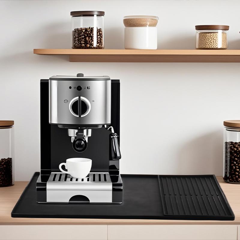 コーヒーメーカーマット シリコン製 キッチン 2層構造 水切りマット 多機能 分離式 トレイ 60 40 耐熱 滑り止め 傷防止 ブラック グレー
